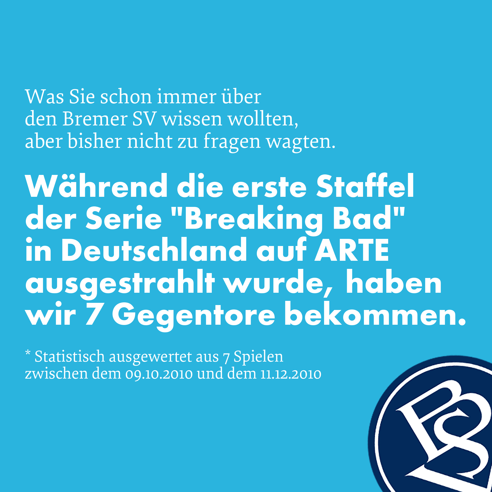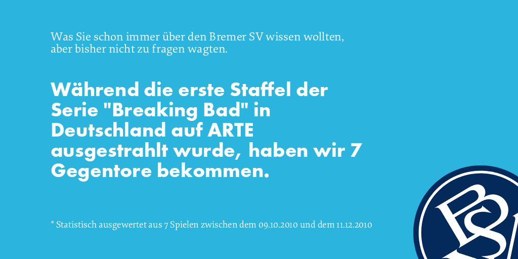Während die erste Staffel der Serie "Breaking Bad" in Deutschland auf ARTE ausgestrahlt wurde, haben wir 7 Gegentore bekommen.
