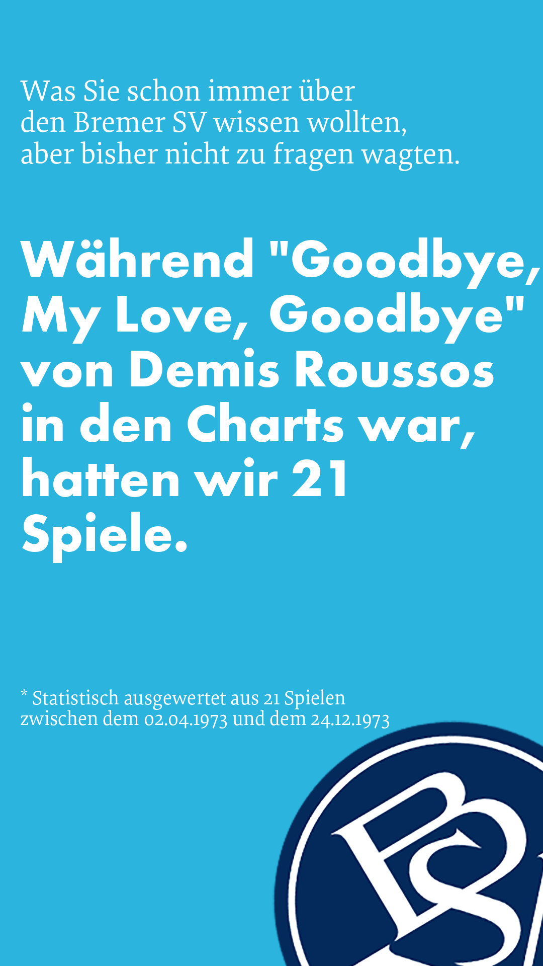 * Statistisch ausgewertet aus 21 Spielen zwischen dem 02.04.1973 und dem 24.12.1973