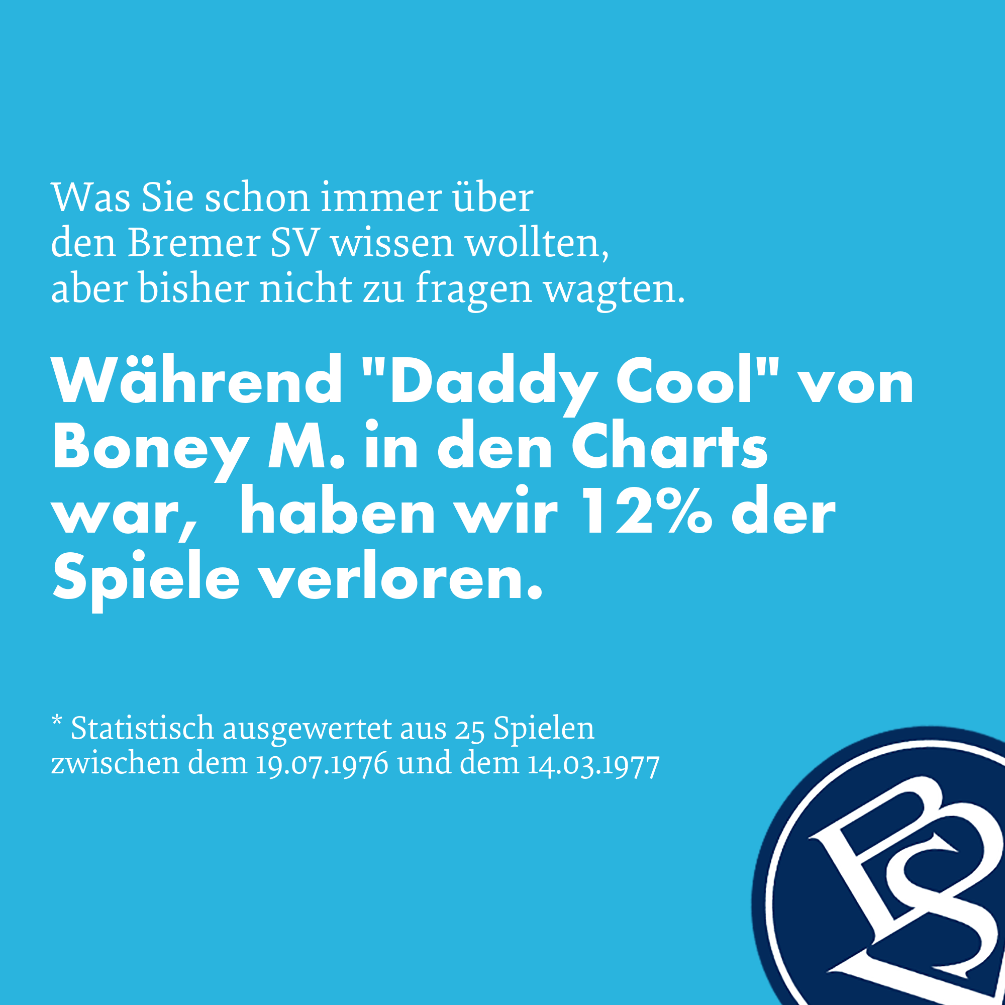 Während "Daddy Cool" von Boney M. in den Charts war, haben wir 12% der Spiele verloren.
