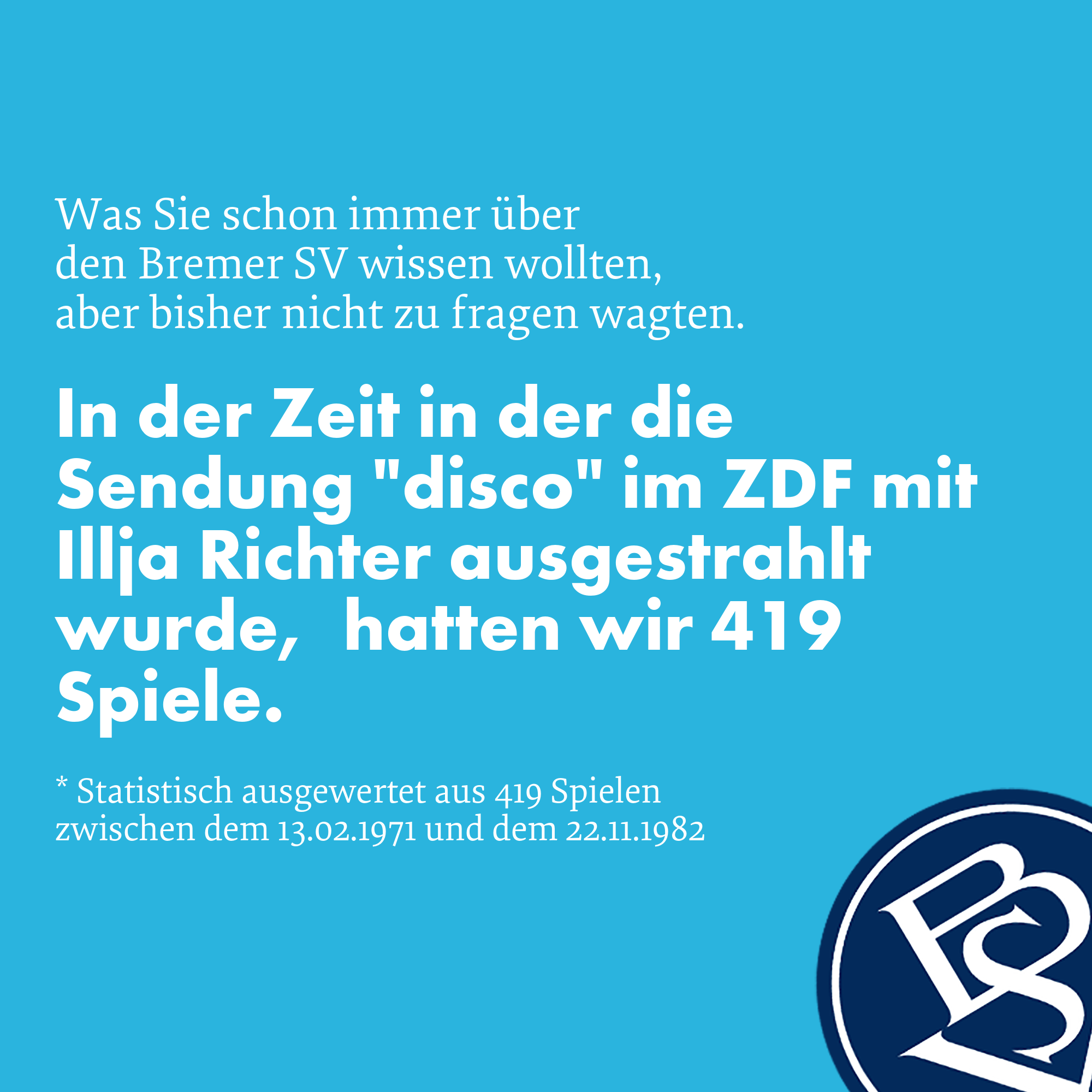 In der Zeit in der die Sendung "disco" im ZDF mit Illja Richter ausgestrahlt wurde, hatten wir 419 Spiele.