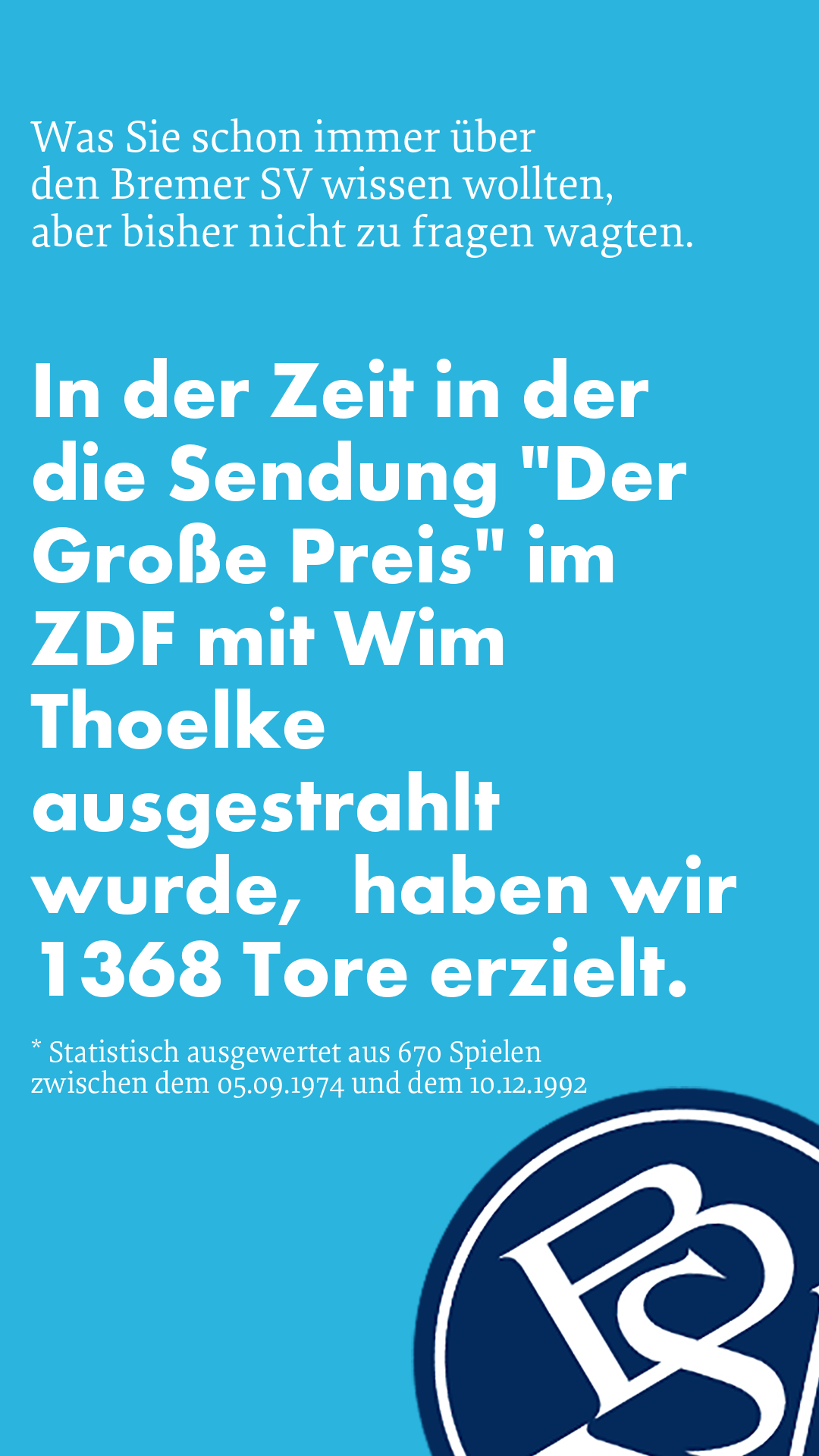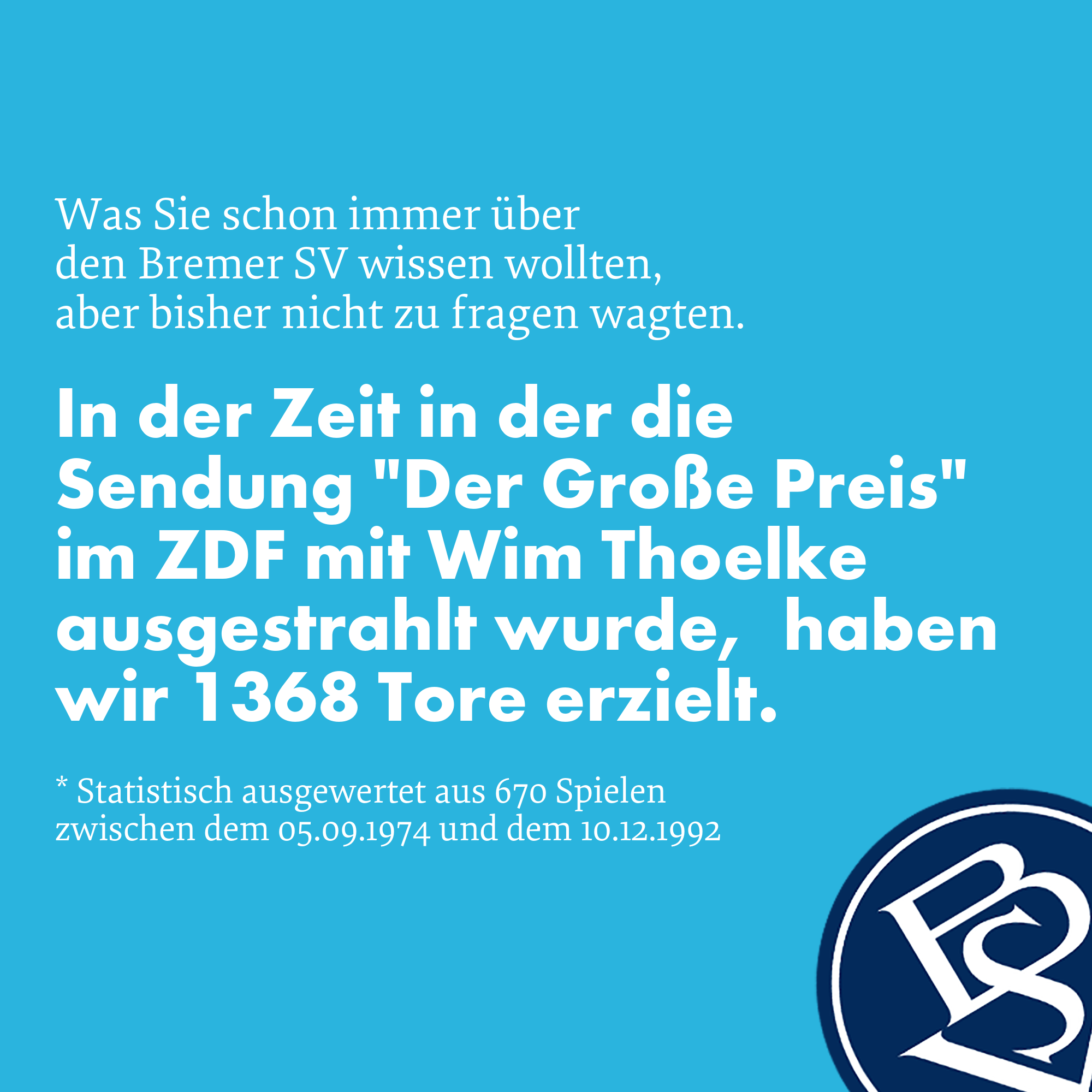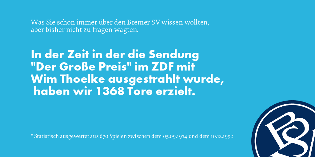 In der Zeit in der die Sendung "Der Große Preis" im ZDF mit Wim Thoelke ausgestrahlt wurde, haben wir 1368 Tore erzielt.