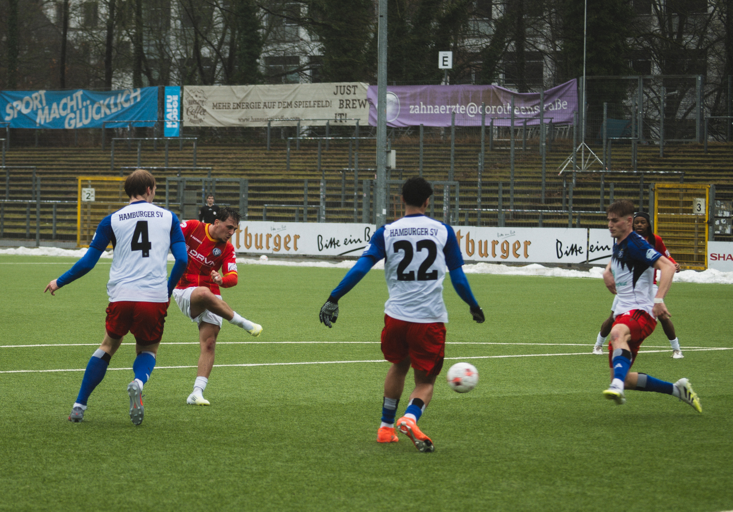 Am 22.02.2026 stand der Rückrundenauftakt auf dem Plan. Für unsere Bremer ging es zu Gast in die Hansestadt Hamburg. Am 23. Spieltag empfing die U21 des Hamburger SV den Bremer SV im Stadion Hoheluft. Beide Mannschaften hofften darauf, dass sie an die starke Form zum Ende der Hinserie anknüpfen könnten. Die Tabellensituation versprach eine ausgeglichene Partie.