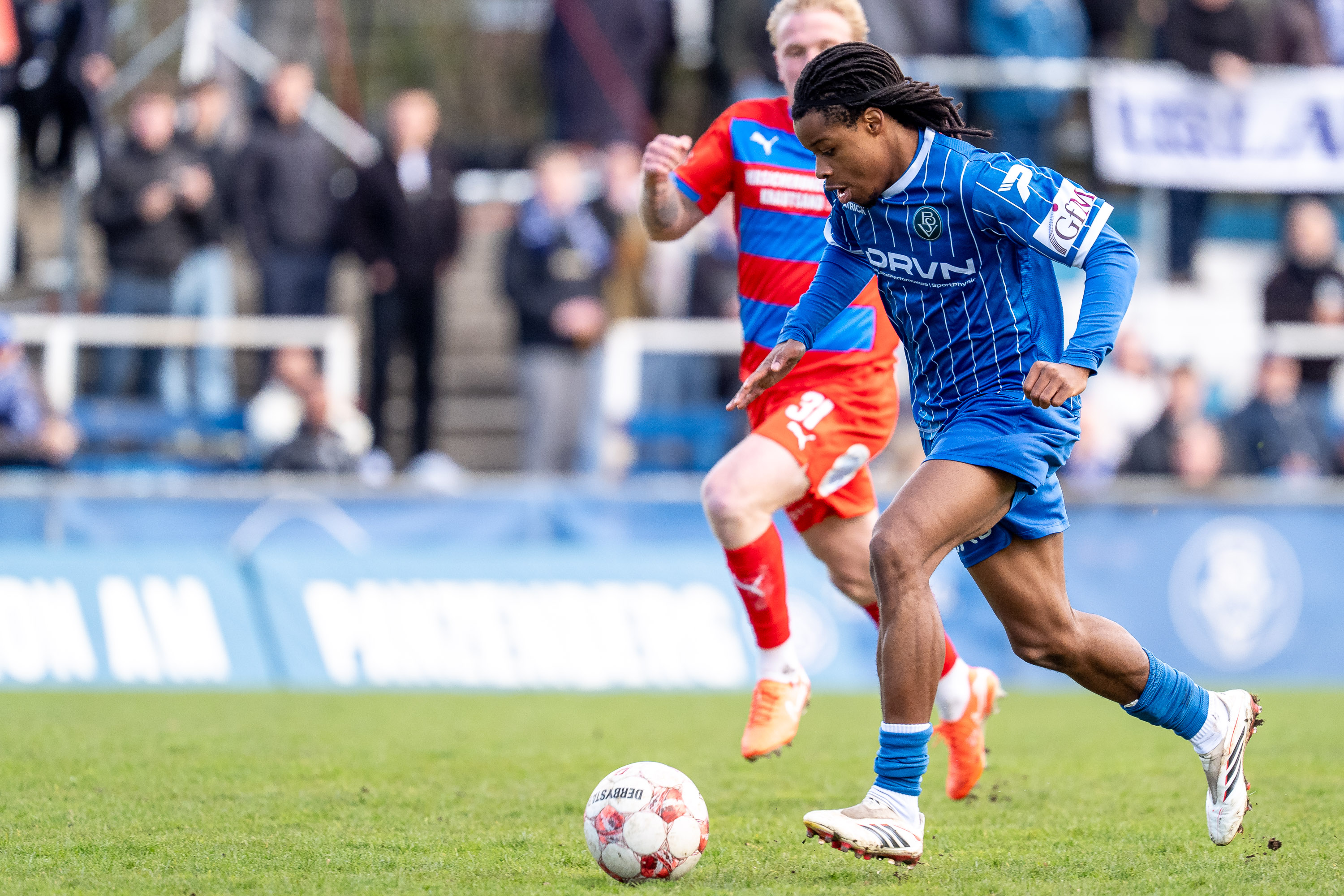 Das Spiel startete und es war direkt zu sehen, dass die Gäste heute sehr offensiv spielen wollten. So kreierten sie in der 2. Minute nach einem schnellen Passspiel die erste Chance, diese endete mit einem Abschluss über das Tor von Manitz. Es folgten direkt 2 Ecken, die jedoch nicht zwingend genug waren. Plötzlich ein Fehler im Mittelfeld, als sich Werner in der 4. Minute den Ball eroberte und nach ein paar Metern auf K.Tchouangue spielte. Dieser scheiterte am parierenden Siefkes. Die Ecke sollte es dann in sich haben. K.Tchouangue schnappte sich das Leder und brachte ihn rein, irgendwie landete der verlängerte Ball bei Gröger, der nur noch einnicken musste. Ekstase! 1:0 am Panzenberg und das schon in der 5. Minute.