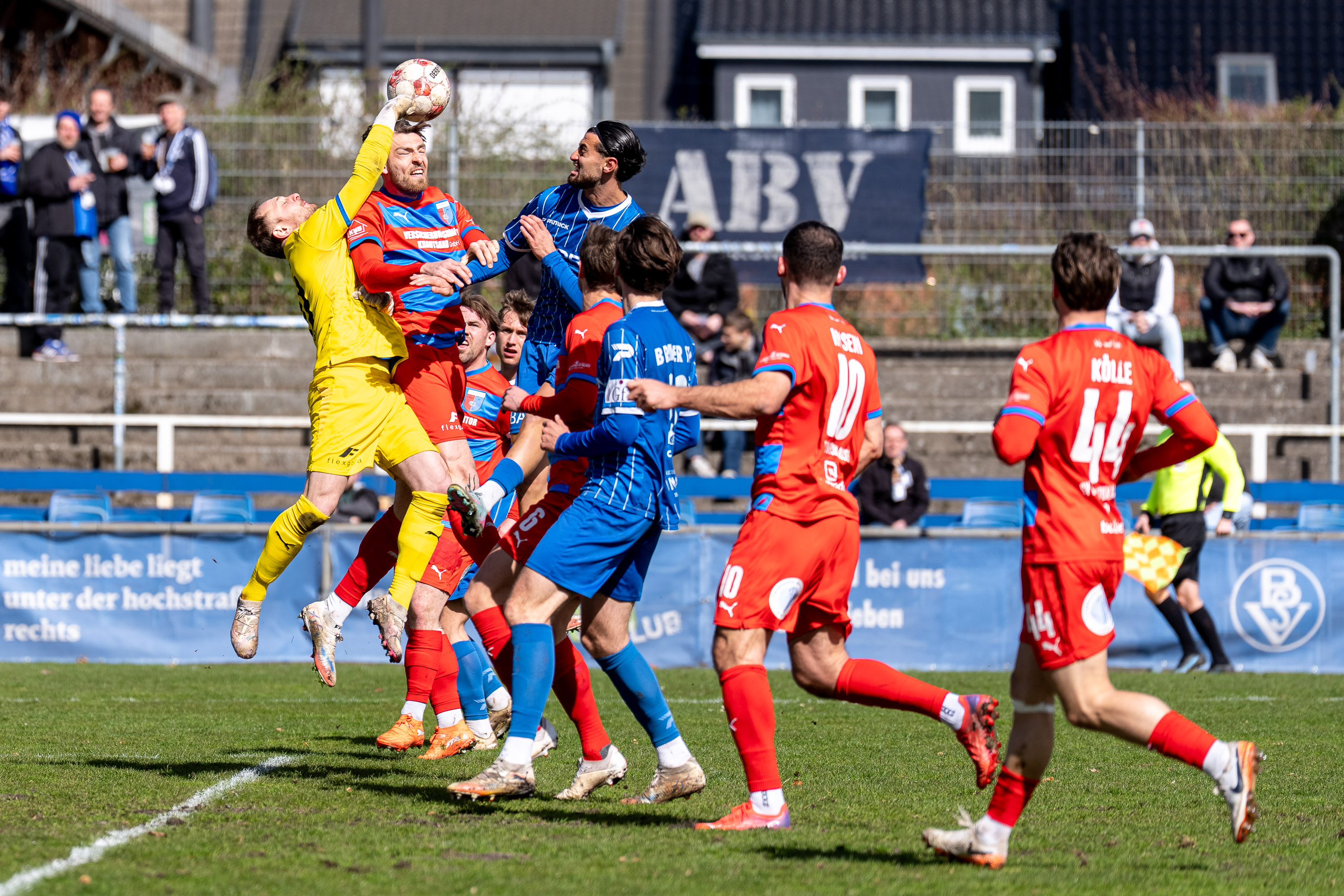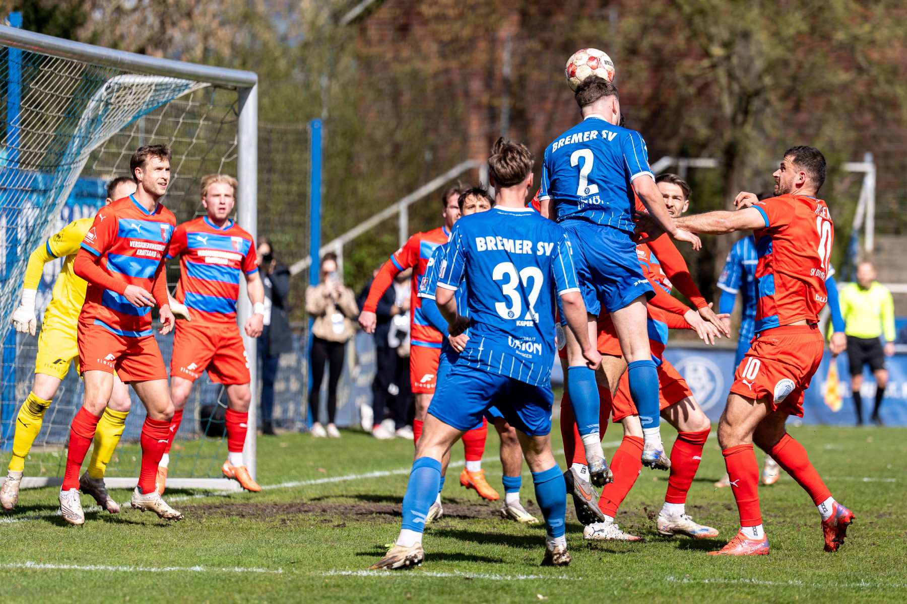 Die erste Viertelstunde ist um und die Bremer können sich langsam etwas aus den Fesseln der Gäste lösen. Unschöne Szene! Gröger stellt sich in der 64. Minute in den Weg von Jelldrik Dallmann, dieser schubst Gröger vollkommen unnötig und unsportlich um und bekommt im Anschluss nur Gelb. Strittige Szene in einem spannenden Spiel. Direkt im Anschluss bekommt der BSV seine erste Chance, als Schmidt den Ball vors Tor flankt, aber keiner rechtzeitig zum Ball kommt. Nun ging es schnell, als der gerade noch gelb verwarnte Stürmer nach einem Schubser von Warm zu Boden ging. Wo? Im Strafraum! Der Schiedsrichter pfeift, zeigt auf den Punkt. Die uns nur zu bekannte Szene endet mit einem von Haris Hyseni verwandelten Elfmeter zum 2:2. Manitz konnte die Ecke zwar ahnen, doch der Schuss war zu platziert. Die Fans des BSV hadern und zeigen trotzdem weiterhin, wie stolz sie auf die bisherige Leistung des Teams sind.